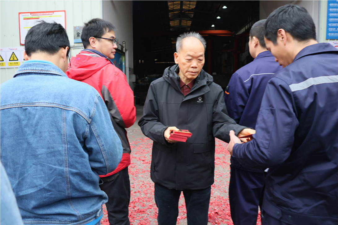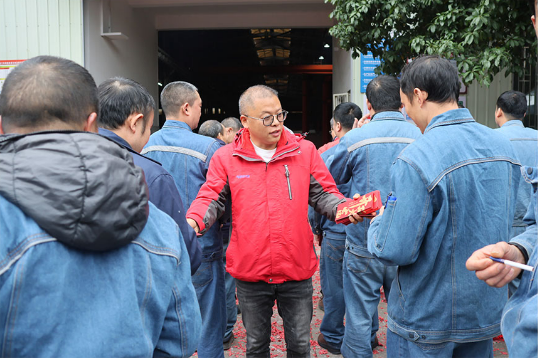 領(lǐng)導(dǎo)致辭結(jié)束后,公司高層為全體員工派發(fā)新年紅包。紅包雖小,情意深重,不僅承載著公司對員工辛勤付出的感謝,